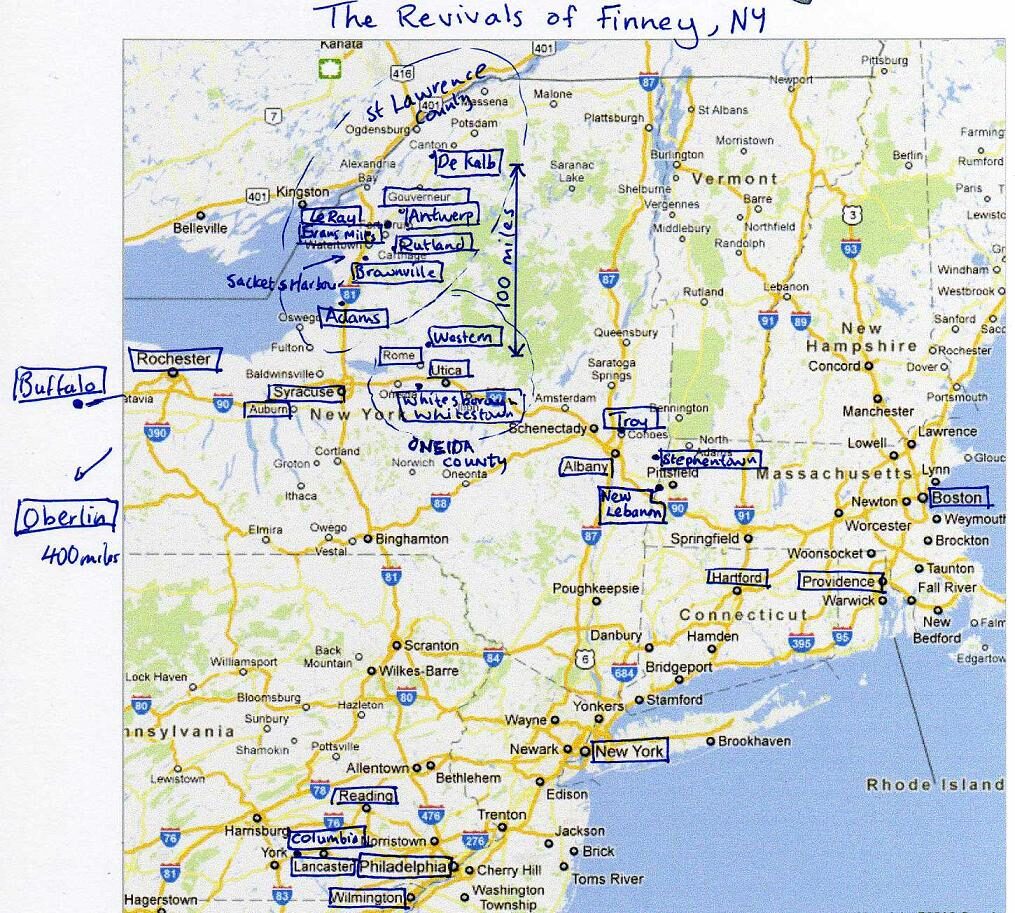 Here is an exhaustive list of villages, towns, and cities where Charles Grandison Finney held revivals during the 1800s, which were pivotal during the Second Great Awakening: